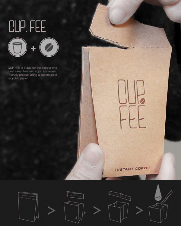 怎样做才可以更环保,这是产品设计师们越来越关注的问题。最近,Jo Sae Bom 和 Jeong Lan 携手带来了这款用可再生牛皮纸制作的咖啡杯 CUP.FEE,撕开封口、加入热水,就能变成一杯热咖啡;而撕下来的部分折叠后还能当搅拌棒,方便且物尽其用。
