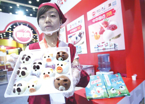这种观点也成为不少企业转型创新的出发点,在思念食品展台,记者便见到了依据这种思路研发的新品——做成呆萌小猪、小熊和熊猫的传统面点。
