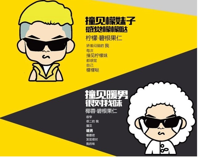 而在产品包装上,此次洽洽食品也别有新意。首先,其针对这三个口味,洽洽食品特别起了昵称:暖男、白富美、腹黑君,并提出有创意的宣传语。例如,“撞见柠檬妹,都感觉自己檬檬哒”、“就怕腹黑黑糖君,撞见一次就得被他黑一次”。