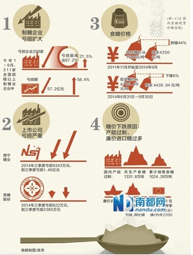 国内粮业产能过剩,加上过度进口廉价糖压制糖价,2012年至今年约三年间,“糖高宗”从每吨高达7000元的售价被拉至4000元的低位。