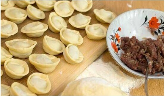 俄罗斯的饺子精巧细致,通常只有1到2英寸(约2到5厘米)大小,在各大餐馆均有供应。虽说各家各户烹饪方法略有不同,但却和乌克兰的vareniki的制作方法大相径庭。相比之下,它们的馅儿更为可口,让人欲罢不能。面团一般由面粉、鸡蛋和水混合制成,饺子馅由碎牛肉、猪肉、洋葱混合而成。它们捏出来的形状有点类似于意大利的饺子(tortellini)。