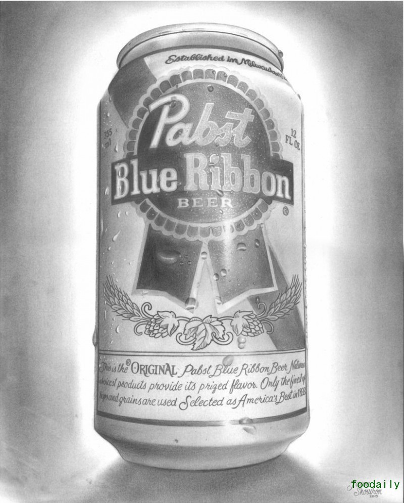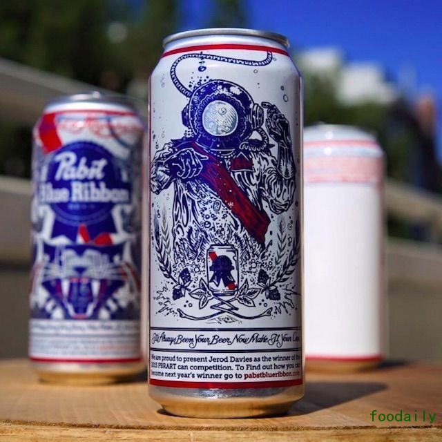 提起蓝带啤酒(Pabst Blue Ribbon),你的第一反应大概就是它朴实无华的经典包装罐。比如这样: