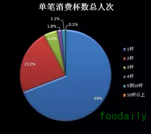 我们把单笔只购买一杯奶茶的用户看作是他单独一个人来消费,那么从图中得出结论:近七成的用户是一个人单独购买,另外三成是和朋友一起的。