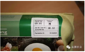 盒中每一个鸡蛋都打上了一串字符,如下图的"1-DE-0831241"
