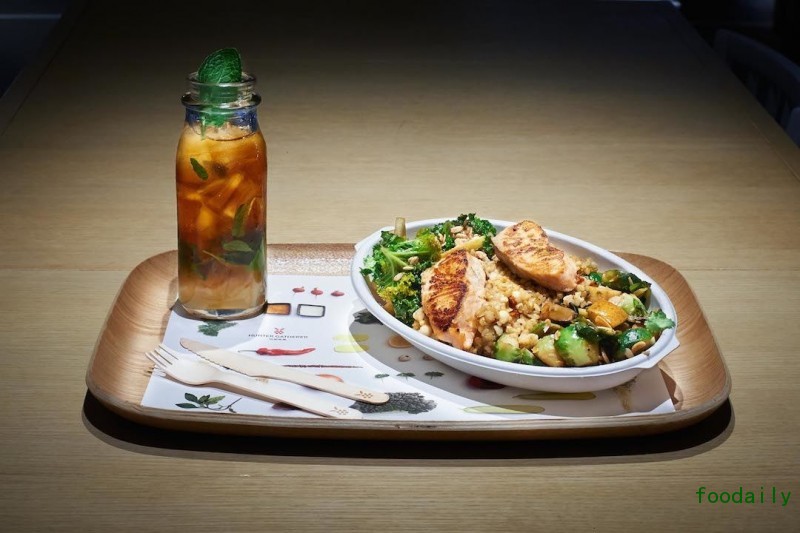 就就餐体验来说,Hunter & Gatherer 倒有点像个食堂。你走近开放式厨房,食物被分成主食、蛋白质、蔬菜和配料,当日菜谱被列在墙板上,每个种类至少提供 4 种选择。食谱由旧金山食品设计师 Brian Bertelsen 负责,在来上海之前,他是旧金山知名餐厅 Sutro’s at Cliff House 的副厨师长。菜谱其实并没有特别之处,反而看上去有点混搭和家常,比如柑橘孜然烤花菜,茶鸡肉和烤南瓜葵花籽。餐厅特制的饮料(尤其是冷制的那些)尤其值得推荐,因为它会让你想起食物本身的味道。你知道的,黄瓜会尝起来像黄瓜,在今天其实是一件不太容易的事情。