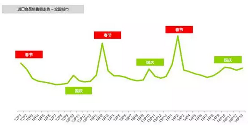 进口食品呈现出明显的节日特征,春节和国庆贡献其全年近40%的销售。这印证了零售行业的一句老话,“得春节和国庆者,得天下”。