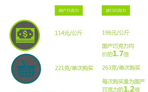 对比国产巧克力,进口巧克力单价更贵,且单位包装更大。