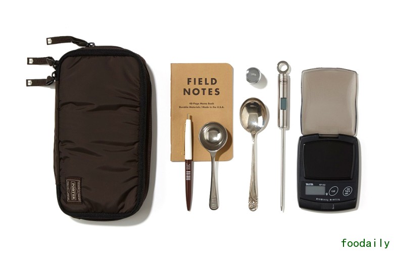 ▲为专业咖啡师或资深爱好者准备的 PROFESSIONAL POUCH,里面收纳了温度计、咖啡勺和电子秤。