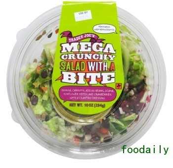 2、Trader Joes超大一口脆沙拉(美国)。沙拉碗用藜麦、胡萝卜、红豆、豆薯、 葵花籽和小红莓制成,并加入香菜做点缀制成。