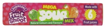 3、Robinsons Fruit Shoot一Mega Sour Mix(超级酸味混合),混合了酸水果风味的果胶混合物 (英国)。天然的颜色和风味,用6种果汁制成。