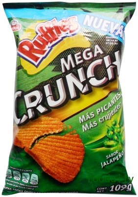 5、Sabritas Ruffles Mega Crunch Sabor Jalapeno墨西哥胡椒味薯片(墨西哥)。更脆,更辛辣,更有味道。