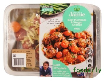 7、用Jamie 牛肉丸和 神户烤香肠创造的Woolworths (澳大利亚)。多汁且口味齐全,这些超级牛肉丸与神户烤香肠,圣女果,有丰富草药的番茄酱和融化的切达奶酪顶料一起焙烤出多汁丰富的味道。