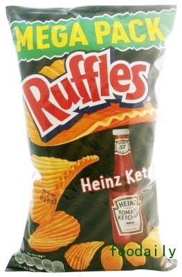 10、Ruffles薯片:亨氏番茄酱(保加利亚)。混有亨氏番茄酱味道的脆薯片卷,超级包装。