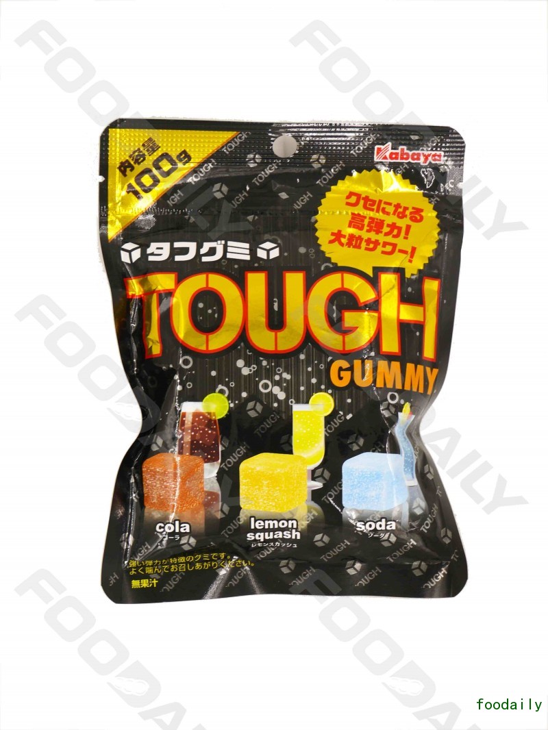 这款偏硬质构的软糖有可乐、柠檬和苏打三种口味