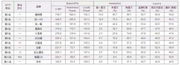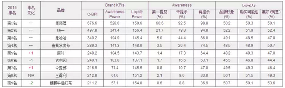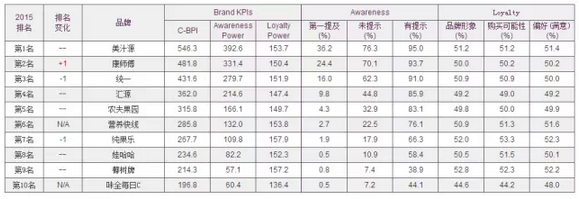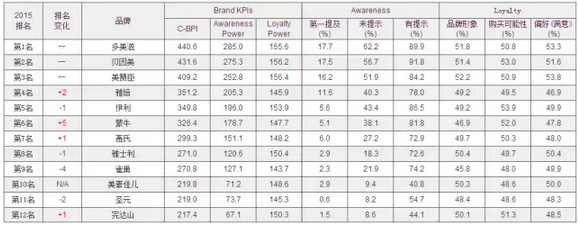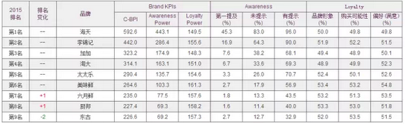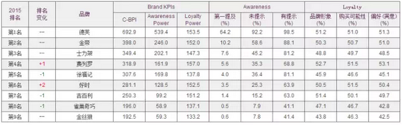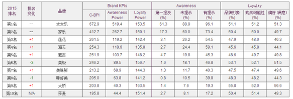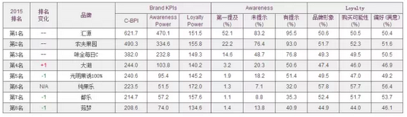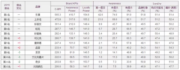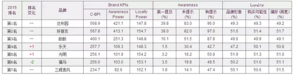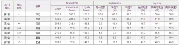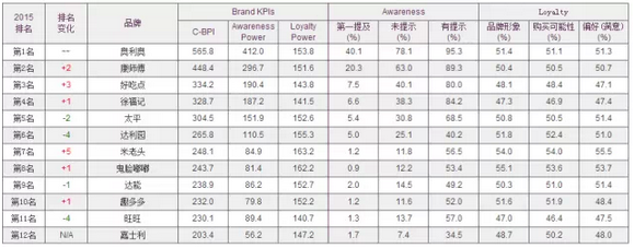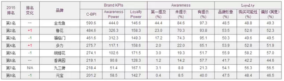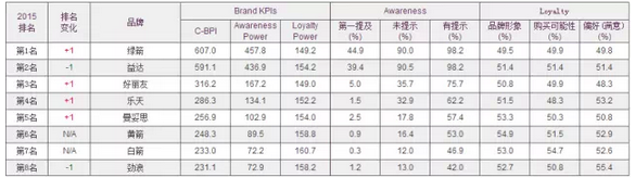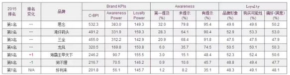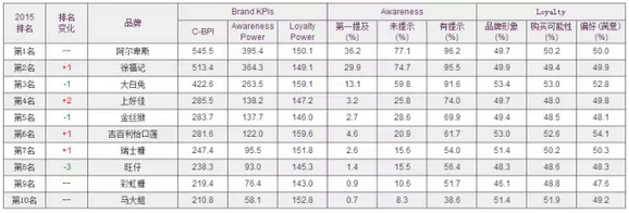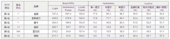 * 各行业C-BPI上榜品牌是指“未提示提及率”大于或等于7%的品牌,表中所列品牌皆为当年度上榜品牌。