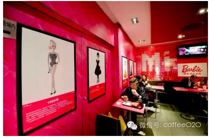 眼下其就在北京、广州、青岛、重庆开了多家芭比主题餐厅。店内各个角度都设有高挑靓丽的芭比人形展板,椅背、墙面也被加上芭比元素,还有放满整个橱窗的迷你芭比娃娃系列,甚至连店员的服装也是粉色...