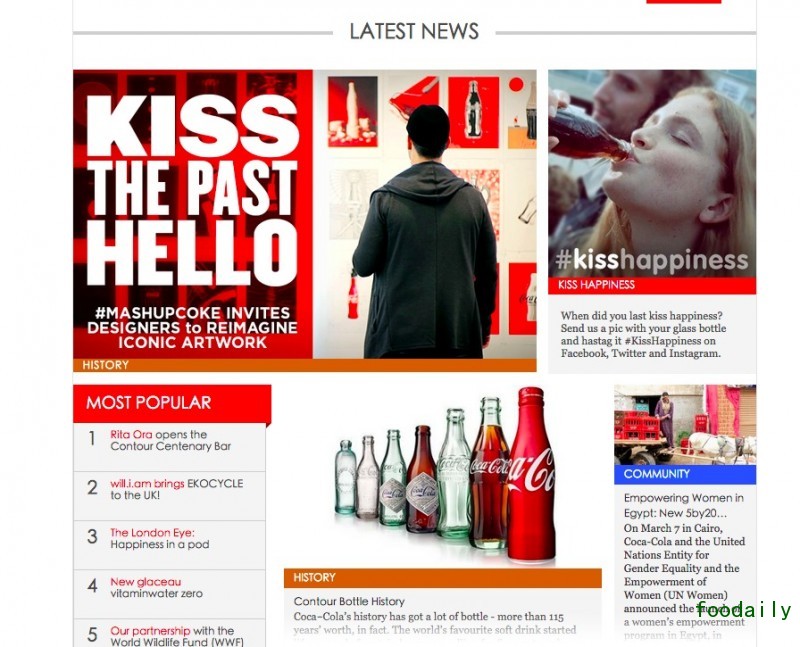 当然,之所以选在现在更新这个主页,还有一层考虑是今年正好是可口可乐弧形瓶诞生 100 周年。