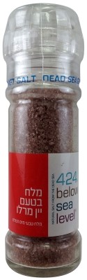 3、海平面下424m梅乐(著名的红葡萄酒品牌)风味盐(以色列)。源自死海的梅乐风味盐,用玻璃磨粉瓶包装,每瓶110g。