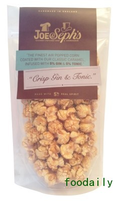 4、Joe And Sephs美味的金汤力(一种鸡尾酒)风味爆米花(法国)。用Joe And Sephs经典焦糖包被的最好的空气爆米花,灌注了5%的杜松子酒和5% 奎宁水。