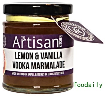 7、工匠厨房柠檬和香草味伏特加果酱(英国)。美味浓郁的果酱用新鲜多叶的柠檬,蔗糖和新鲜的香草籽混合制成,之后浇上香草伏特加。