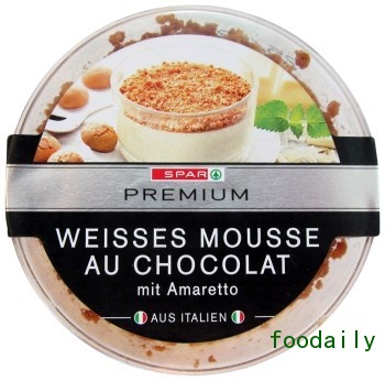 8、带有意大利苦杏仁酒amaretto风味的白慕斯巧克力(澳大利亚)。90g的白慕斯巧克力用苦杏仁酒点缀。