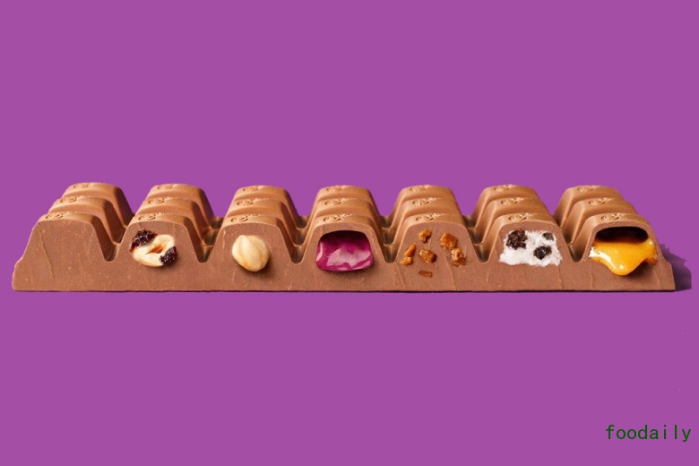 吉百利最近推出了一款相当大胆的产品:把旗下销量最好的 7 款巧克力內馅集结起来,分别塞进整块巧克力的 22 个方块里,并将其命名为 Dairy Milk Spectacular 7,让消费者只需一口就将美味一网打尽,再也不用在货架前为选择而烦恼。不过比较遗憾的是,这款创意新品目前仅在全球限量发售 50 套,不知道未来会不会大规模量产呢?
