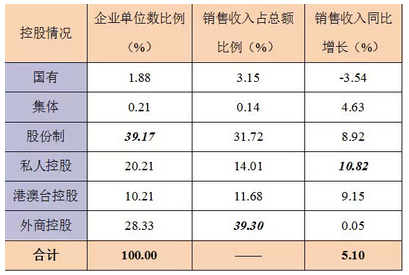 表四 2014年我国啤酒业销售收入按控股情况分类比值表