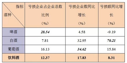 在2014年酿酒行业亏损企业情况来看,虽然啤酒行业的亏损面仍是最大的,但亏损额呈现降低,表现优于其它主要酒种,和行业盈利水平的表现情况也是相符的(见表六)。