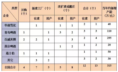 并购的主角当属百威英博,分别收购了四平金士百和江苏大富豪这两个被行业认为年内规模最大、并购金额最高的啤酒企业,此外,青岛啤酒收购淄博绿兰莎55%的股权,嘉士伯成功收购重啤集团东部资产,成为了年内仅有的四起并购行为。