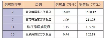 表十一 2014年啤酒产品在淘宝网和天猫网店铺销售情况
