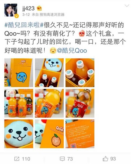 整个酷兒的“回归之旅”,还有一个亮点就是充分调动了消费者的互动以及UGC 内容的自发传播。酷兒在#我和酷兒的独家记忆#的话题讨论中,和忠实粉丝深入对话,并为其定制了限量版酷兒礼盒。收到礼盒的粉丝,第一时间在微博晒出礼盒,并再次分享关于酷兒的童年往事,从而引起了话题的二次传播。