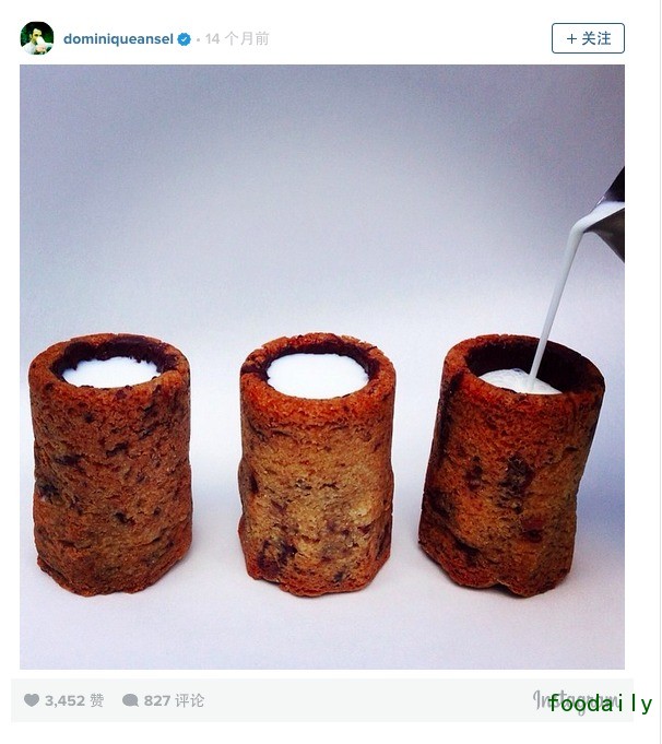 另外,去年初,发明了 Cronut 这个可颂+甜甜圈类食品(具体是什么请看这里)的 Dominique Ansel 在被自己的产品捧红了之后,又研发了一款新品:一口杯的巧克力饼干,它的食用方法是中间倒上牛奶然后一口干或者怎么样。星巴克的曲奇吸管难免让人想到它......