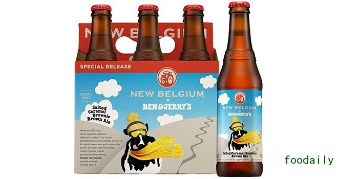 Ben & Jerry与美国第三大工艺酿酒商,新比利时酿造公司组队,创造了咸味焦糖布朗尼褐色麦芽酒。