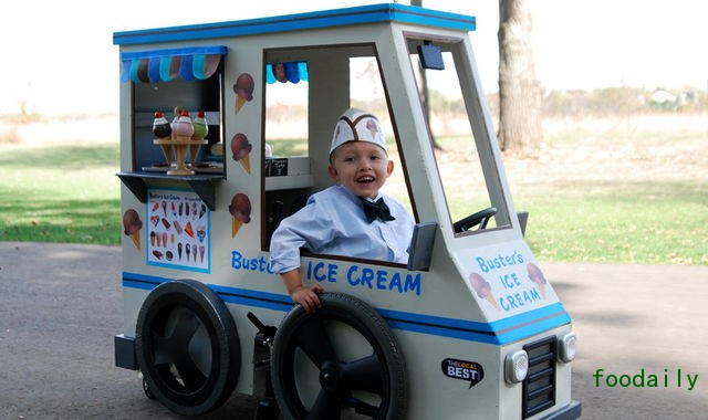 这有一辆迷你卡车,开在办公室里送冰淇淋