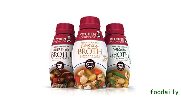 Kitchen Accomplice减盐浓缩浓汤是一种与众不同的新产品,这是一种装在塑料挤瓶中的浓缩液体,具有浓汤/调味品双重用途。Kitchen Accomplice被誉为“新一代浓汤”,可以像传统液体调料一样使用,并能为菜肴带来丰富的口味。它的另一个卖点是减少浪费,相比原先包装液态浓汤只有数天的保质期而言,这款产品开封后能够冷藏六个月。