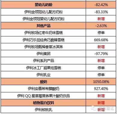 值得注意的是,一季度伊利各类产品的商业赞助类广告及宣传同比涨幅高达305.56%,蒙牛商业赞助类广告同比下滑-81.89%。