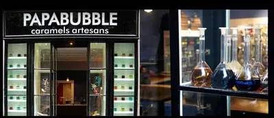 2011年10月1日PAPABUBBLE终于来到中国,中国第一家的帕帕糖果店在北京CBD世贸天阶开幕。北京店与门挑选派遣了2名年轻艺术家,亲赴西班牙巴塞罗那老店学习受训3个多月,目前成为全球最有创意的糖果师。北京店虽然仅仅3个多月,但受到顾客和媒体的热烈欢迎。零售销售额最高单日超过2万多元,并接受到宝马、戴尔、阿迪达斯等跨国公司的订单。 这些七彩颜色如何变成一颗颗精致的糖果?造糖果的工场就在店内,而且是全开放的形式,您可观赏煮糖、调色、拉糖、塑型、延展、切糖的手工制糖过程整个造糖过程。