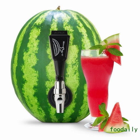 二、利用Watermelon Keg Kit将西瓜打个洞,再将其转进西瓜里。如图所示,这工具其实就是个水龙头。