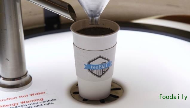 TeaBOT 煮茶机器人可以在 4 分钟的时间里快速冲泡这样一杯用户定制的茶。先是由用户在一台平板电脑上选择茶叶的种类、浓度、特别的口味,然后茶叶被倒入滤网中加入热水煮三分半钟左右的时间,一杯热茶就做好了。