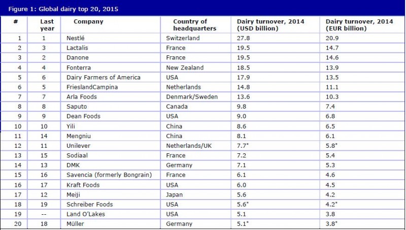 7月29日,荷兰合作银行公布的2015年度“全球乳业20强”榜单中,蒙牛凭借稳健的综合表现排名第11位,相比去年排名连续上升3位。这也是蒙牛连续7年入围此榜单。