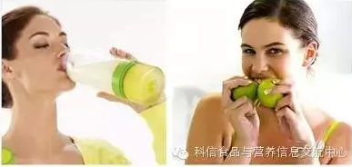 即便不做实验也能明白,人们喝果汁的速度远远大于吃水果的速度,而喝果汁所带来的饱感远远小于啃水果所带来的饱感。啃一个苹果就挺辛苦了,胃里也挺满了;连续吃两个苹果之后,没有人会要求第三个。但是,喝一杯果汁非常轻松,连喝两三杯也一点不辛苦。然而,果汁中包含了水果中所有的糖分,也就是集中了水果中所有让人长胖的力量,升高血糖的力量。一个苹果或梨,最多也就榨半杯果汁;喝两三杯果汁,就等于喝进去了4-6个水果的糖分!