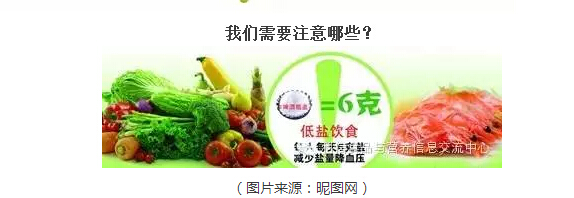 我们日常饮食中所要注意的,首先还是烹调时要适当控制食盐的使用量,不要让烹制的食物过咸。其次是尽量少食用腌制的食物和酱类,这些食物里面的钠含量经常高得惊人,如腌肉、腌菜、辣酱、黄酱等,适当佐餐即可,但不要养成“不吃炒菜、光靠辣酱下饭”的饮食模式,长期如此,不但钠摄入量过高,其他营养素也容易缺乏或不平衡。(除了腌菜、酱菜之外,含钠量较高的还有比如话梅、饼干等,所以特别提醒大家,一定要仔细看营养成分表,那些几口下去就等于吃足了一天的钠的食物,购买时一定可要慎重啊!)