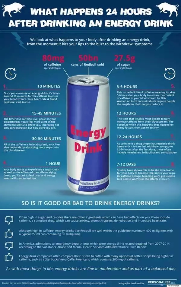 喝完一罐红牛后的24小时,你的身体发生了什么变化