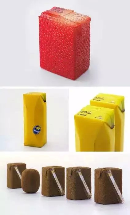 设计大师深泽直人设计的一组果汁包装,没有比这种方式更能形象的表现果汁的新鲜度了。