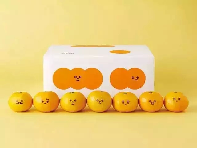 把可爱的表情贴在柑橘上,中国人喜欢在水果上印“福禄寿喜”之类的吉祥话,而日本柑橘品牌Mikans在这点上更显风趣幽默。