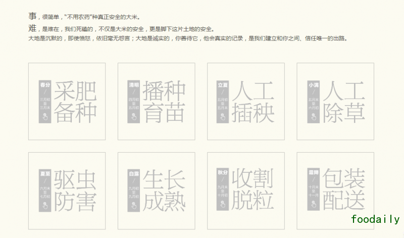 从采肥备种开始到包装配送,本该如此努力保证每一个步骤安全无公害,不让任何有可能的污染源影响到大米的产出。据称,通过这种方式种植出来的大米,通过了 SGS 关于农残、重金属残留以及非转基因等 300 多项检测。