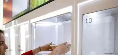 你可以把这些格子想象成一些餐厅中应用于大堂与厨房间的自动传菜台,或者一台巨型自动售卖机,当然这面格子墙背后还是有厨师的。