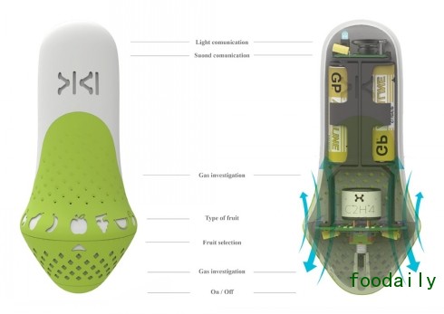 KIKI通过感觉水果散发的味道来工作,并把这个意见传达给你。你需要做的就是选择一枚需要KIKI监测的水果,然后把KIKI插到水果篮里就可以了。KIKI体内的传感器随即开始工作,并在水果临近腐烂之前,通过蜂鸣和灯光提醒你。对于西瓜和菠萝这些水果界中的无表情帝,它也一样能够读心。