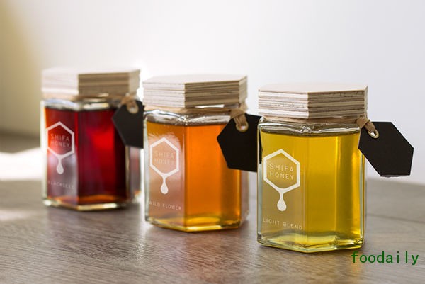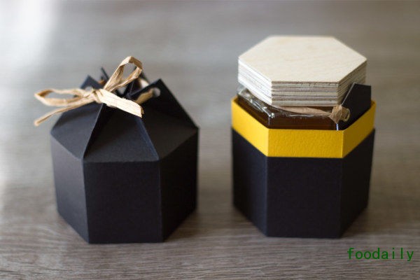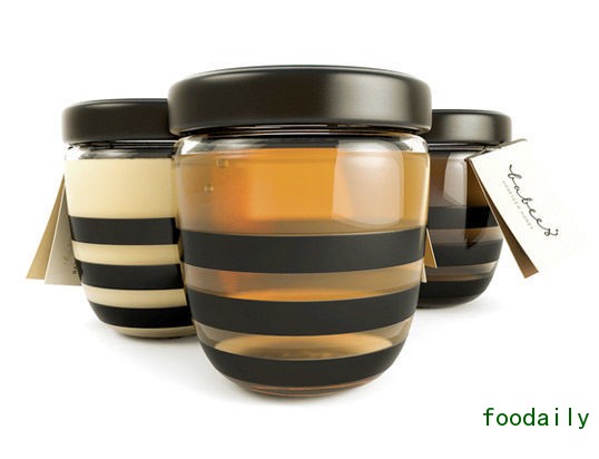 透明的玻璃瓶透出亮丽的黄色,配上六角形或马蜂窝的外形,一眼看去就知道是一瓶蜂蜜。确实,蜂蜜的包装设计常常利用马蜂窝、蜜蜂等标志性元素,在超市的一排瓶瓶罐罐里脱颖而出,偶尔的卖萌也能激发出瞬间买下来的欲望。不过,也有例外。
