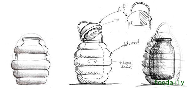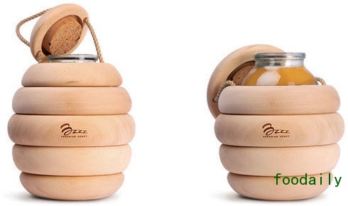 Backbone Studio 的设计令人脑洞大开,是维尼熊最爱的马蜂窝,还是地雷炸弹,或者是一个蝉蛹……其实,它只是在装蜂蜜的玻璃瓶外加了木质的圈,再两头小中间大地叠起来。巧妙的是,木圈并没有粘在一起,仅靠绳子相连,打开时有抽丝剥茧的感觉,也是一个变相的积木。这个设计来自亚美尼亚,是设计师的即兴创作,无法在超市购买。